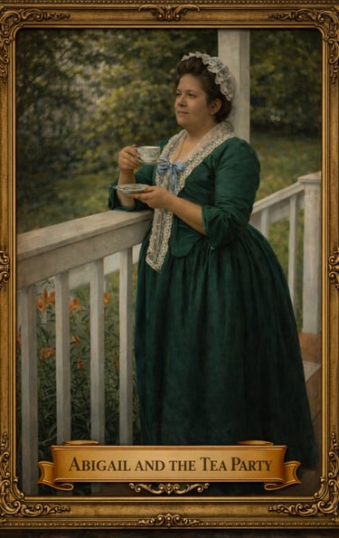 In 1774, Abigail shares with the Ladies of Braintree the aftermath of the Boston Tea Party. Living now under the Intolerable Acts, she begins to see the path to Revolution